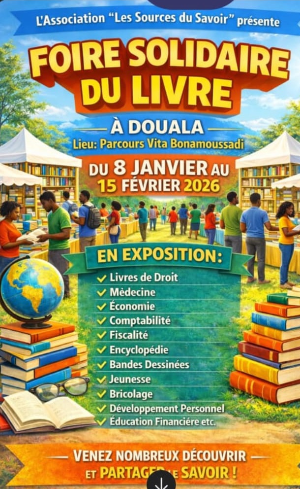 Douala vibre au rythme du livre et du partage intellectuel. Du 8 janvier au 15 février 2026, l’Association « Les Sources du Savoir » organise la Foire solidaire du livre, un rendez-vous culturel majeur ouvert à tous, au Parcours Vita de Bonamoussadi.