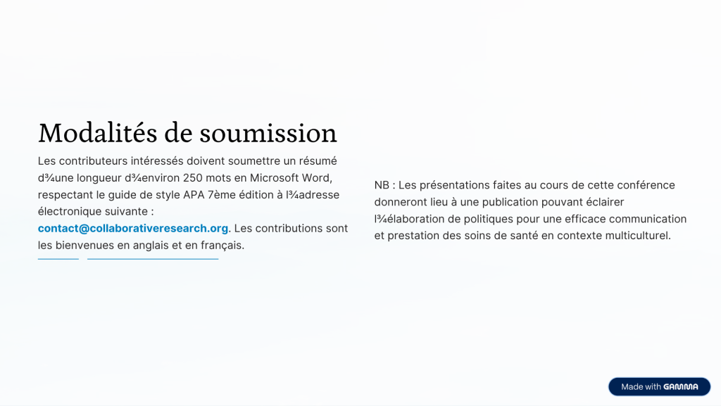 The organizers strongly encourage case studies, as it is from the field that enlightenment will come. The conclusions of these three days of debate will not remain a dead letter: they will result in a publication intended to inform the development of more effective and humane health policies. Because, as the conference points out, language is not a technical detail in care; it is its very heart. It is urgent that health systems learn to speak all their patients’ languages.