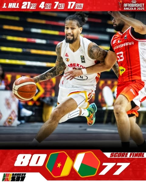 Menée de main de maître par un Alfred Aboya galvanisé, l’équipe camerounaise a su résister à un adversaire malgache combatif. Le match fut un véritable échange de coups, chaque panier arraché avec une combativité à toute épreuve. C’est dans ce contexte tendu que Jeremiah Hill, l’arrière américain naturalisé, a émergé comme l’artisan inattendu du succès. Auteur d’une prestation XXL, sa lucidité et son adresse ont été décisives pour renverser la vapeur dans les moments clés. Bien que ses statistiques exactes pour ce match n’aient pas été publiées, son impact se mesure à sa constance tout au long du tournoi, où il cumule en moyenne près de 12 points, 5,5 rebonds et 7,7 passes décisives par match.