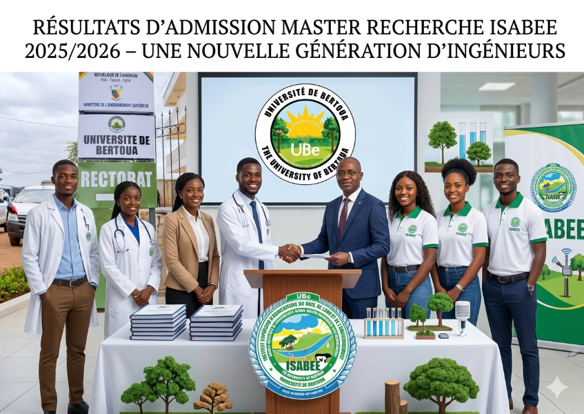 Le verdict est tombé. L’Université de Bertoua vient de franchir une étape clé de sa rentrée académique 2025/2026 en dévoilant les résultats d’admission à l’Institut Supérieur d’Agriculture, du Bois, de l’Eau et de l’Environnement (ISABEE).